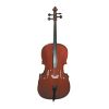 Capri Cello: Solid Top, Hand Carved, Antique Finish, Spirit Varnish, Highly Flamed Back and Sides, Ebony Fitted. Includes Hard Shell Case. Sizes 4/4-1/8